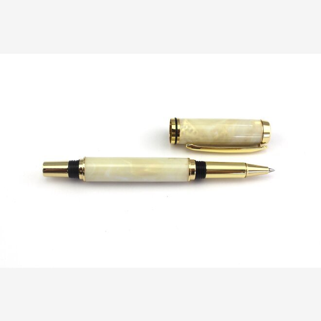 This pearlescent creamy white resin has hints of shimmering pink, purple, blue, purple and green that swirls and shimmers in the light, like white opal. It makes an ideal pen to sign your wedding certificate or wedding guest book.