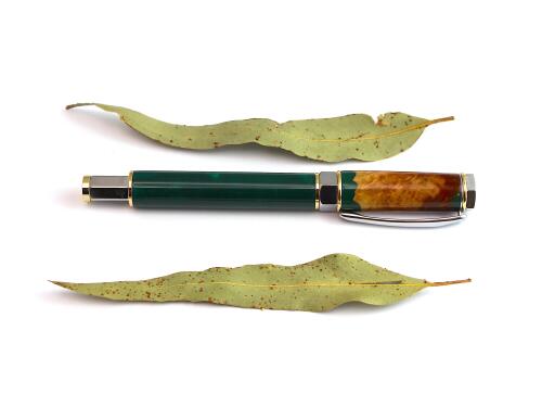 This pen is created from hand poured artisan resin in stunning emerald green with subtle pearlescent swirls. Emerald green says iconic Australia. It has a bold personality. The resin is hand poured in small lots by Australian resin artists, each one unique.