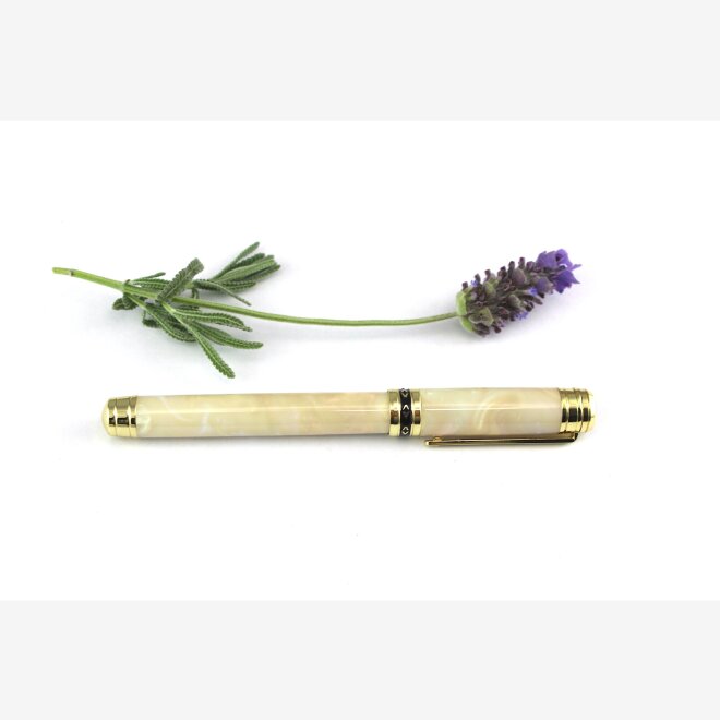 This fountain pen is handcrafted from a bright white resin blank with shimmer and shine within it. It simply dazzles. The Unicorn is classic white, and is hand poured in small batches in Australia by an Australian resin artist. A special wedding pen will be treasured for generations.