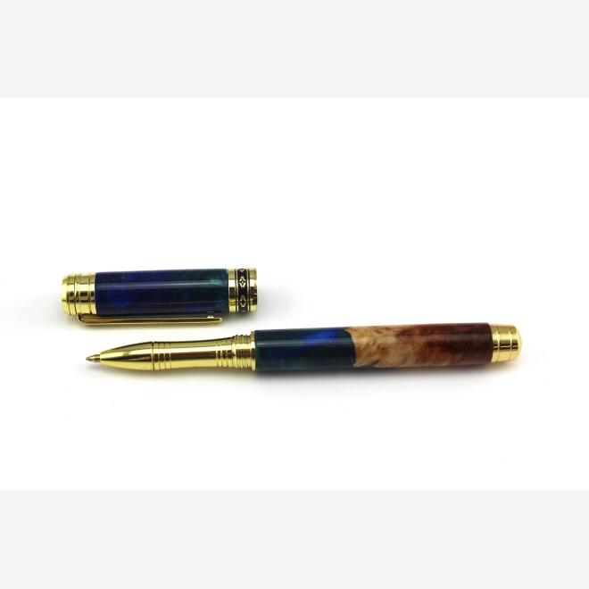 This artisan resin is named Aurora Australis ( Southern Lights) after the phenomenon seen in the southern night sky; a spectacular light show where blue, green, purple and red perform a celestial dance. This pen is created from an Australian timber burl plus hand poured resin in pearlescent blues and greens. We are proud to support fellow Aussie artisans by adding this Australian made acrylic blank to our range.