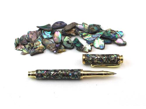 Pāua shell (Abalone) hold a rainbow of iridescent colours. Quality shells were sustainably sourced from New Zealand and meticulously placed onto the pen body with the utmost attention to detail. The striking colours range from deep sapphire blue and turquoise green to purples, pinks and creams, no wonder it is also known as sea opal. Pāua shell is traditionally associated with the stars and recognised by the New Zealand Maori as treasure. This pen is sure to impress the most discerning writer or pen collector.