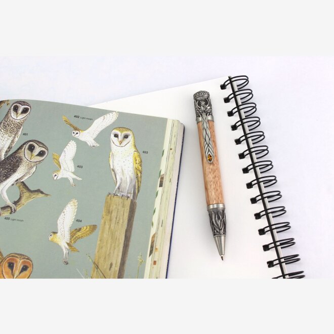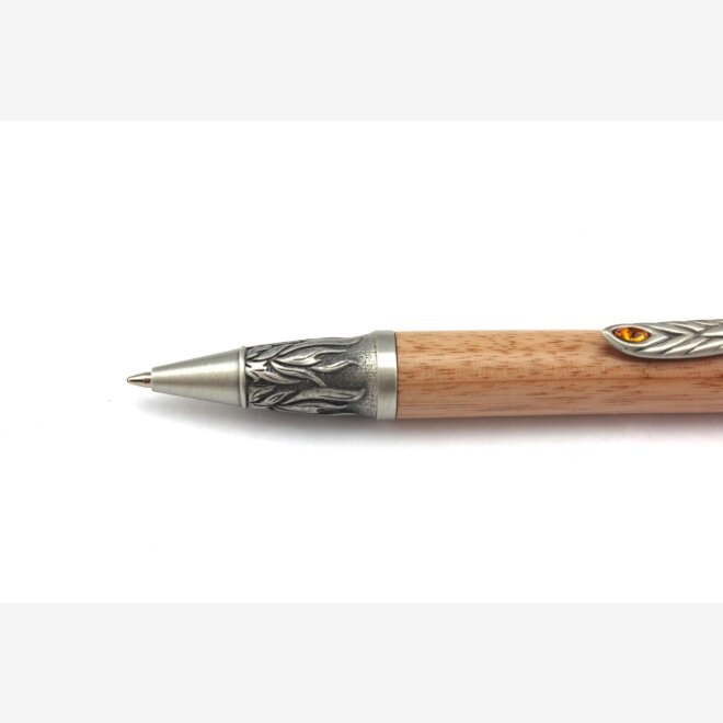 The phoenix firebird is captured superbly. Flames are embossed at the tip of the pen, the phoenix is shown rising from the ashes with wings outspread, with the clip depicting the majestic tail. An amber crystal on the clip and cap add to the beauty and majesty of the firebird. $1 from the sale of this pen goes towards planting trees to reforest Australia with Reforest Now. Plus at checkout you can plant one tree and receive a tree planting certificate.