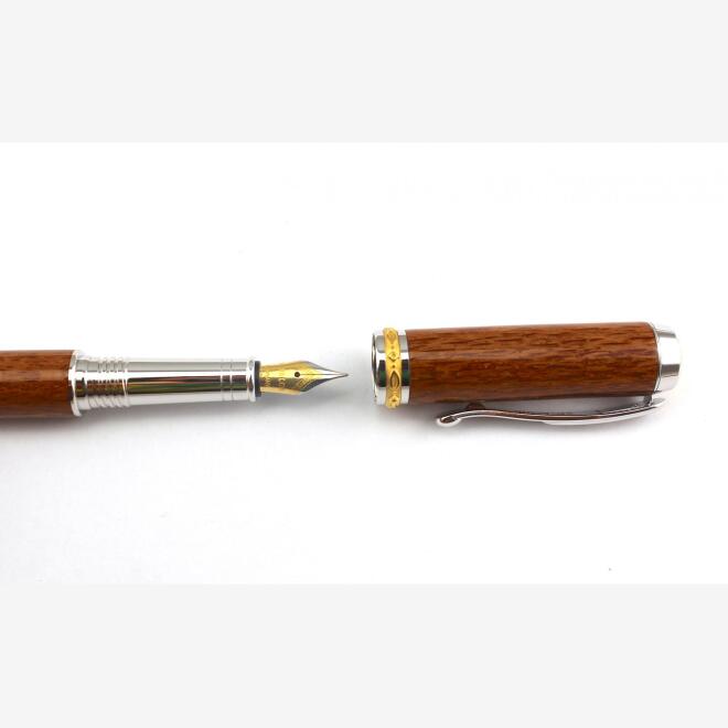 The Boss pen is a statement piece. The strength of rhodium is combined with hand cast 22k gold accents and the warm charisma of timber to create an inspired writing experience. It is a pen of distinction. $1 from the sale of this pen goes towards planting trees to reforest Australia with Reforest Now. Plus at checkout you can plant one tree and receive a tree planting certificate.