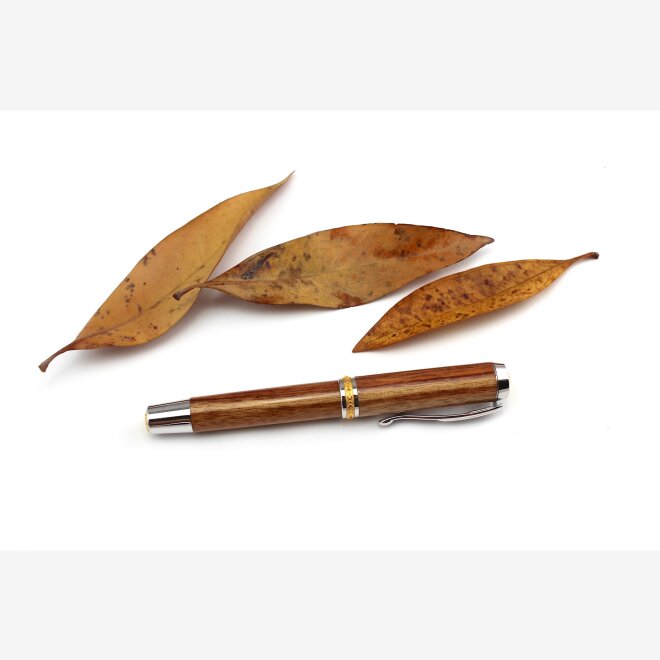 The Boss pen is a statement piece. This luxury pen has the strength of rhodium combined with hand cast 22k gold accents and takes the warm charisma of timber to create an inspired writing experience. It is a pen of distinction. $1 from the sale of this pen goes towards planting trees to reforest Australia with Reforest Now. Plus at checkout you can plant one tree and receive a tree planting certificate.