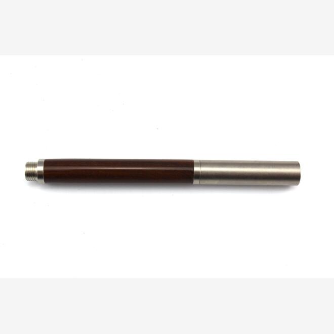 This pen is handcrafted from Australian gidgee timber. Gidgee wood is prized for its strength and durability and is one of Australia's hardest timbers. The heartwood is a deep, rich brown colour and the outer sapwood is very pale. Gidgee timber has a very fine grain and can be highly figured. The indigenous Kalkadoon people made nulla nulla's, shields, boomerangs, swords and clapsticks from gidgee’s rich, brown wood.