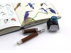 Azure Kingfisher - Shimmer is a complex and multifaceted ink replicating the beauty observed in the Azure kingfisher’s coat. It dazzles with light aqua, teal green, dark royal blue and a golden shimmer that plays with the light to create greenish tones bordered by a vibrant red sheen. This ink is eye-catching and a delight to write, draw and paint with.