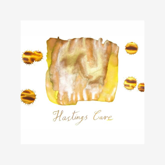 Hasting's Caves is a shimmer ink which shades from a warm faint yellow to dark amber. It has a greenish edging sheen and light silver shimmer.