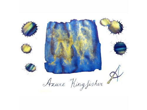 Morning Frost is an inviting cool mid blue grey ink with smooth character that dries to a shimmering silver. This ink resembles the frost sheen seen on blades of grass in early winter mornings.